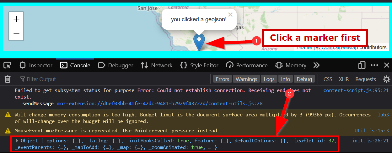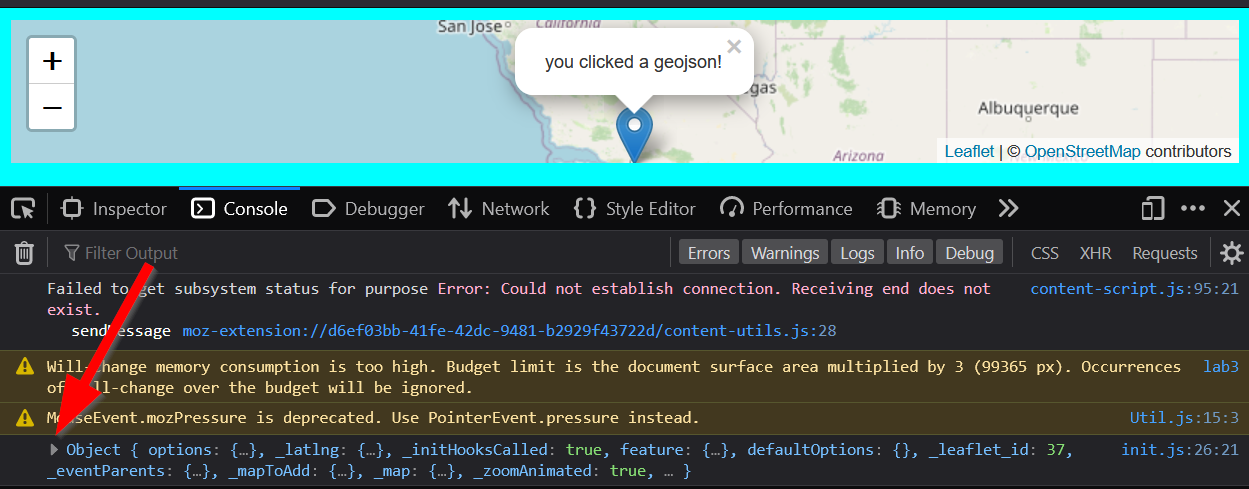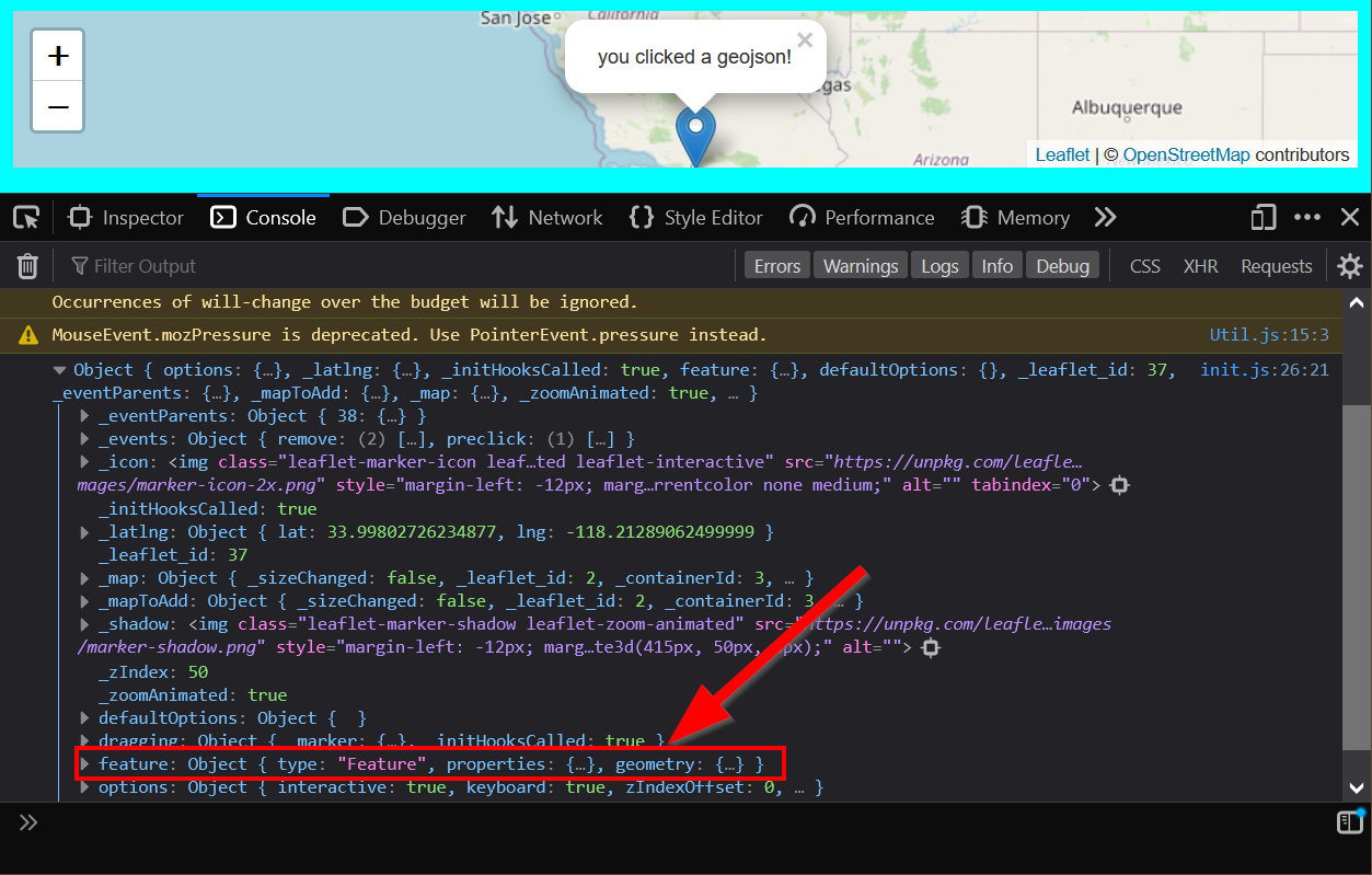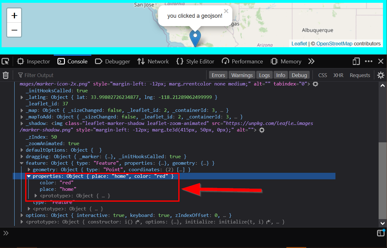 Object { options: {…}, _latlng: {…}, _initHooksCalled: true, feature: {…}, defaultOptions: {}, _leaflet_id: 37, _eventParents: {…}, _mapToAdd: {…}, _map: {…}, _zoomAnimated: true, … }