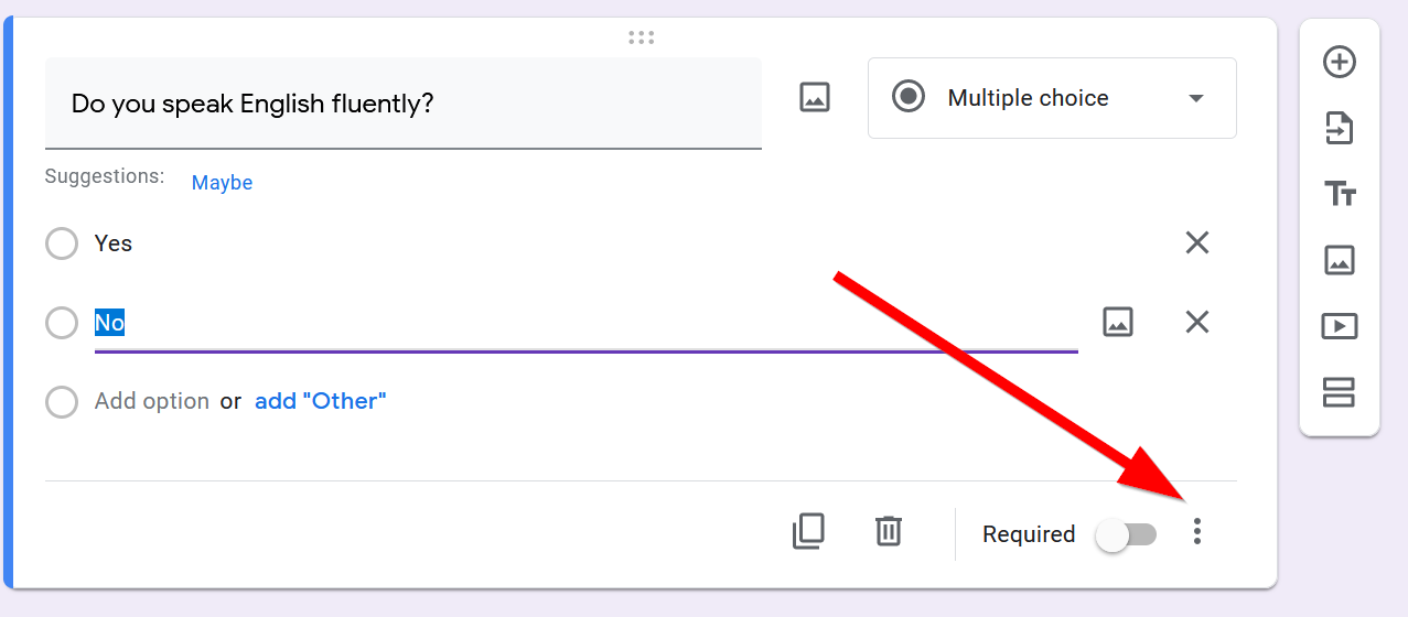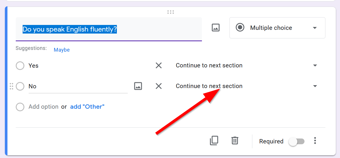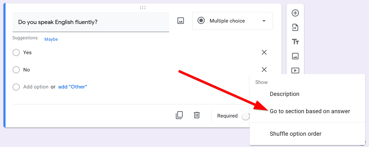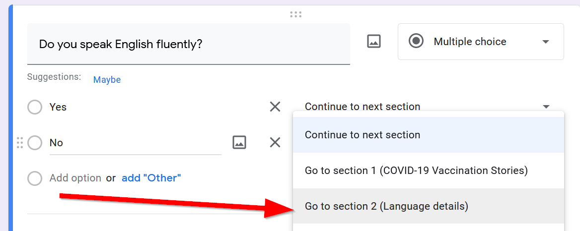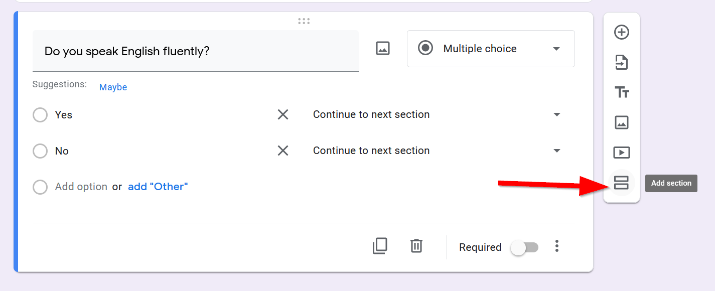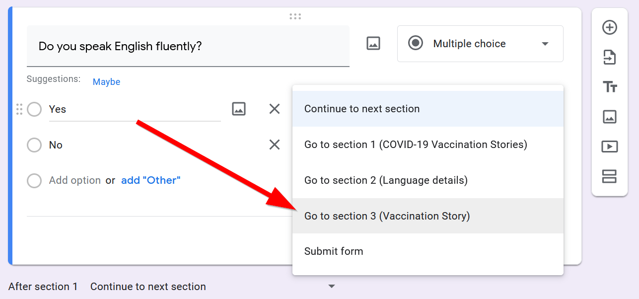 Add a relevant question to help guide the user about the survey, Do you speak English fluently