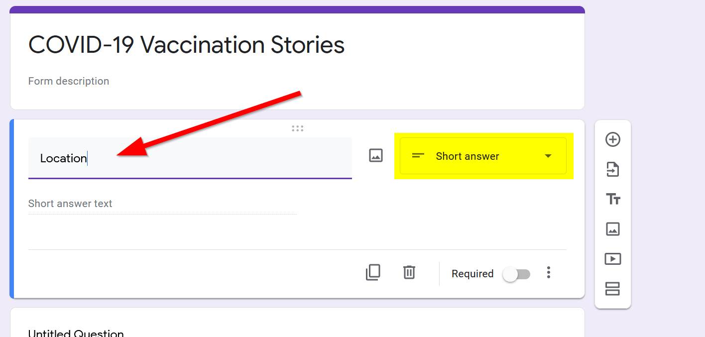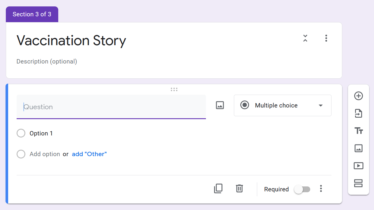 Add a little description about the survey form here. For our example we will be collecting stories about vaccinations during COVID-19.