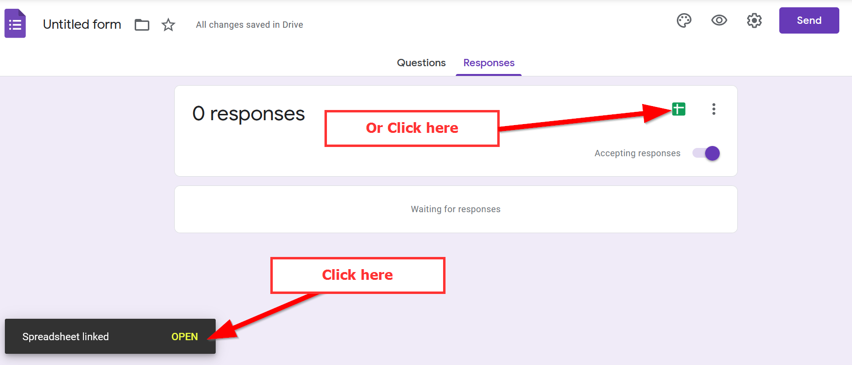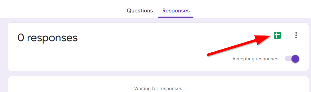 Open the response Google Sheet by clicking open or the Google Sheets icon: