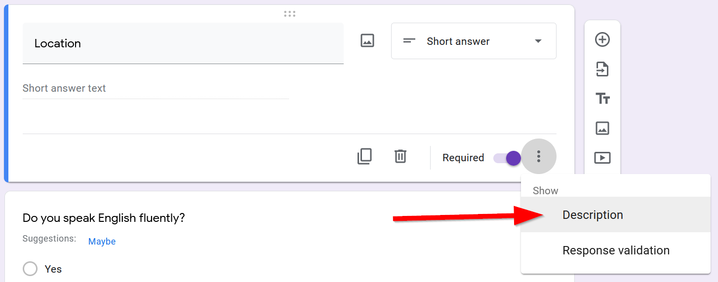 You can fill in descriptions below the question to help with answering by clicking on the “more” triple dots: