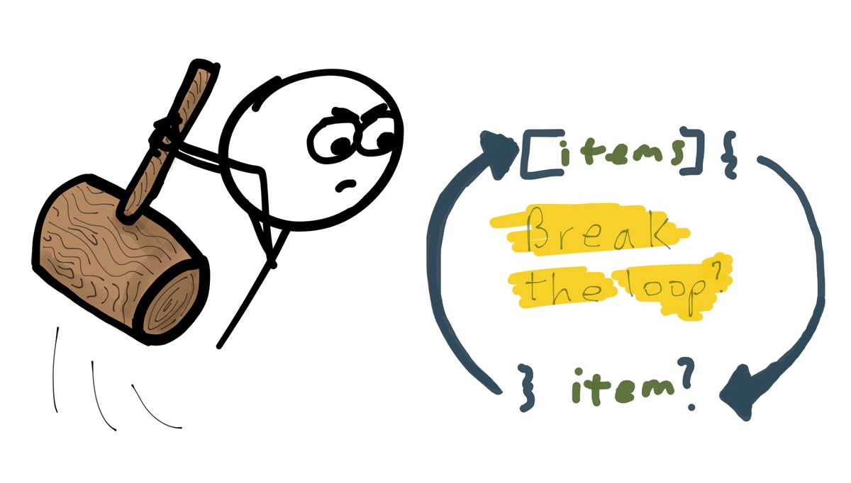 In the technical schematic diagram above, notice that the items is a JavaScript array. When the array hits the last item, the loop stops.