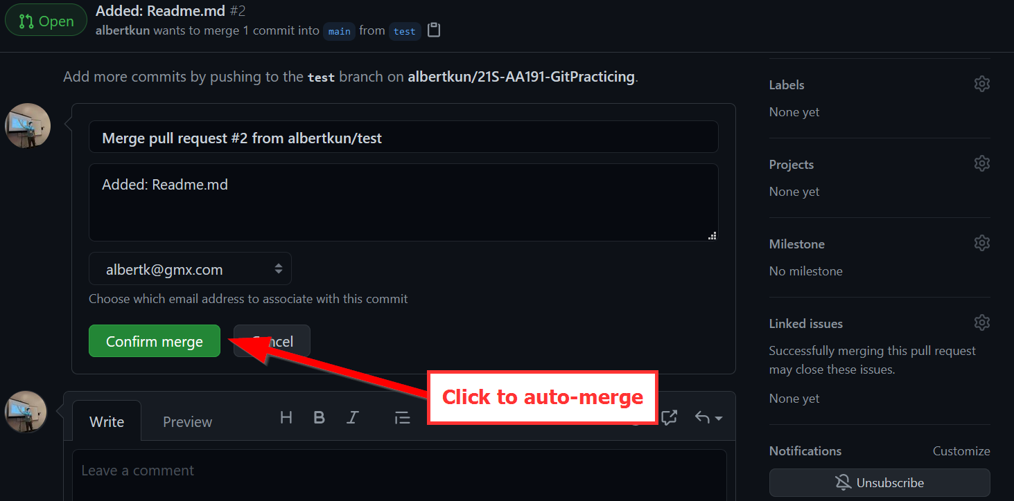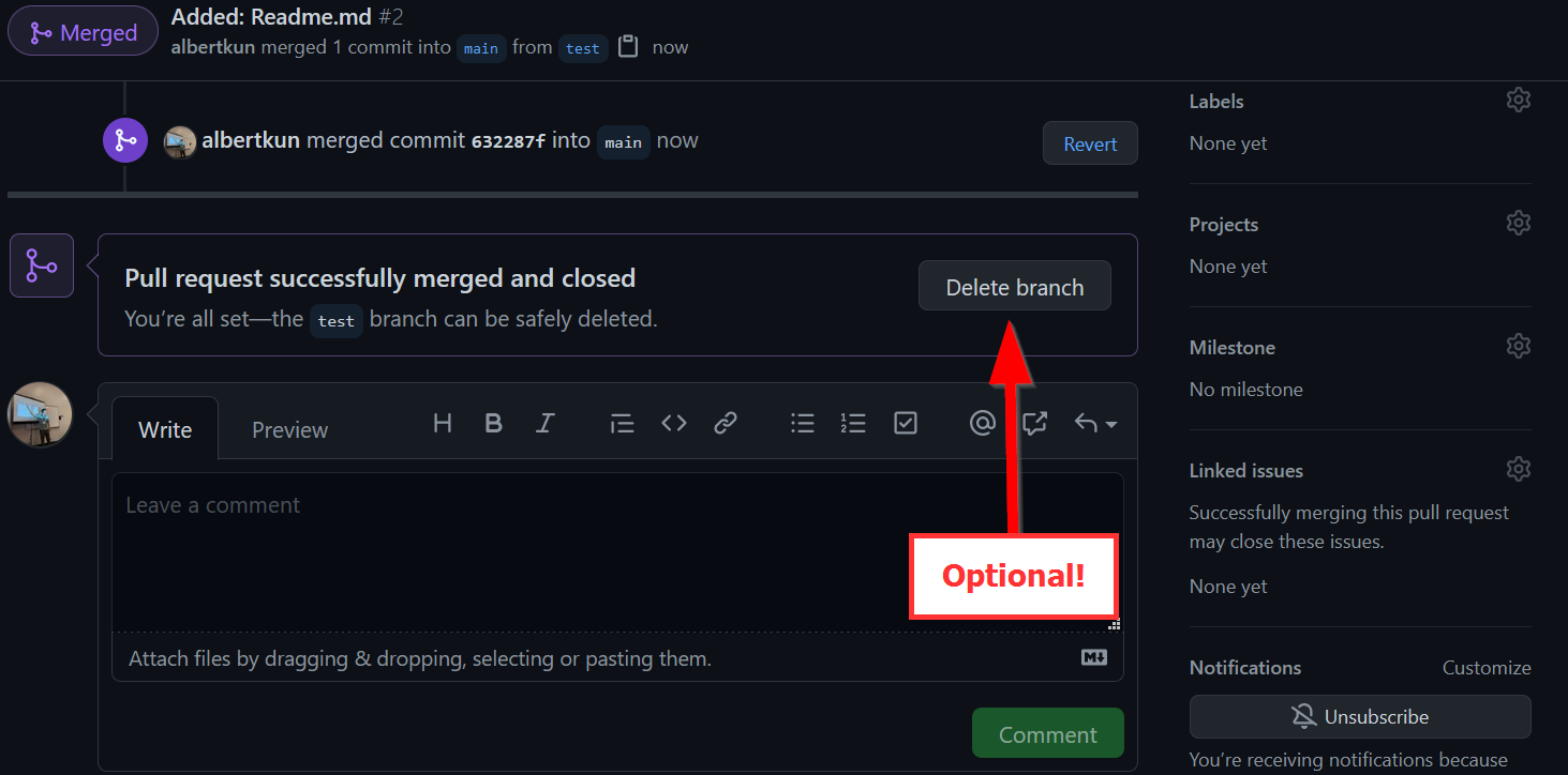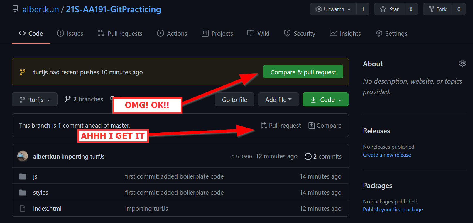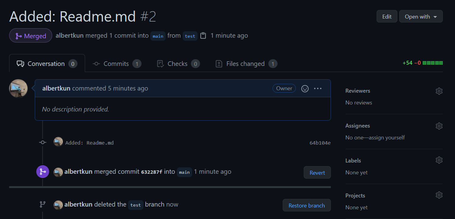 You will then be greeted by a new page where you can title, assign, comment, etc. about the pull request (or PR):