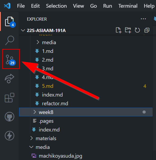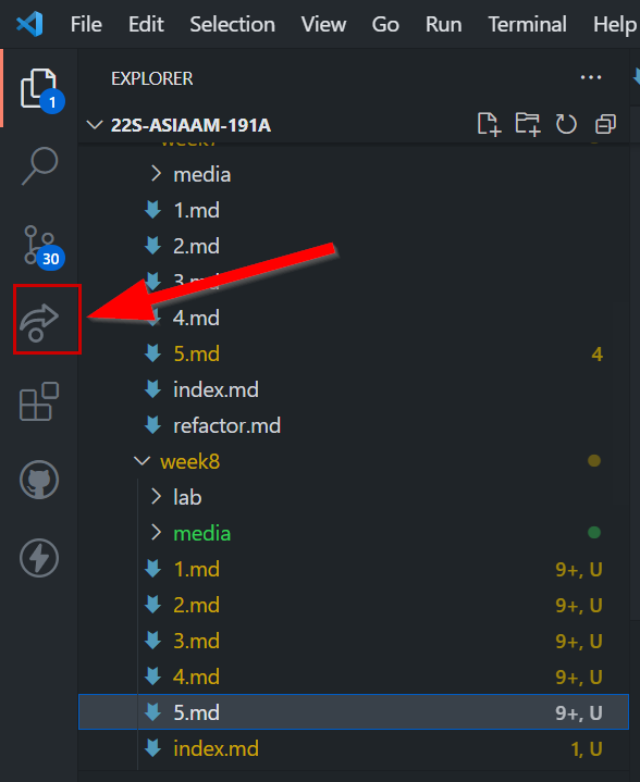 The host can commit changes by clicking on the source control tab in VS Code when they are done with the session.