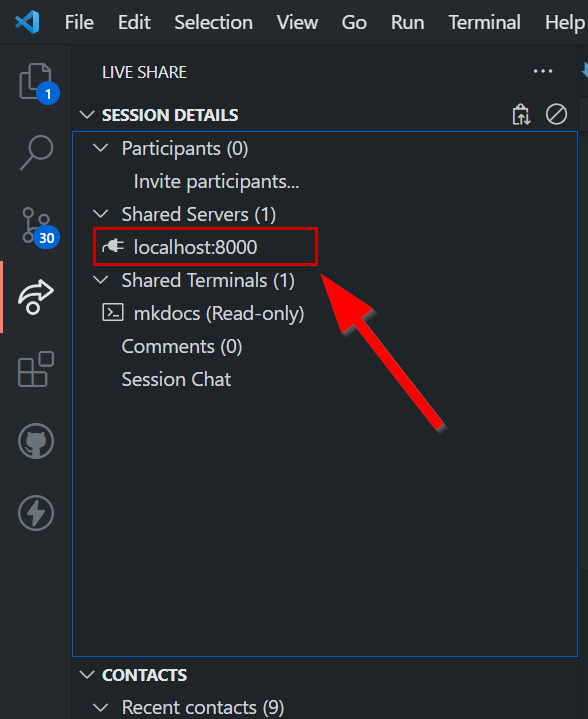 If the host is sharing a live server of their website, you can view it on your local machine by clicking on the live share button: