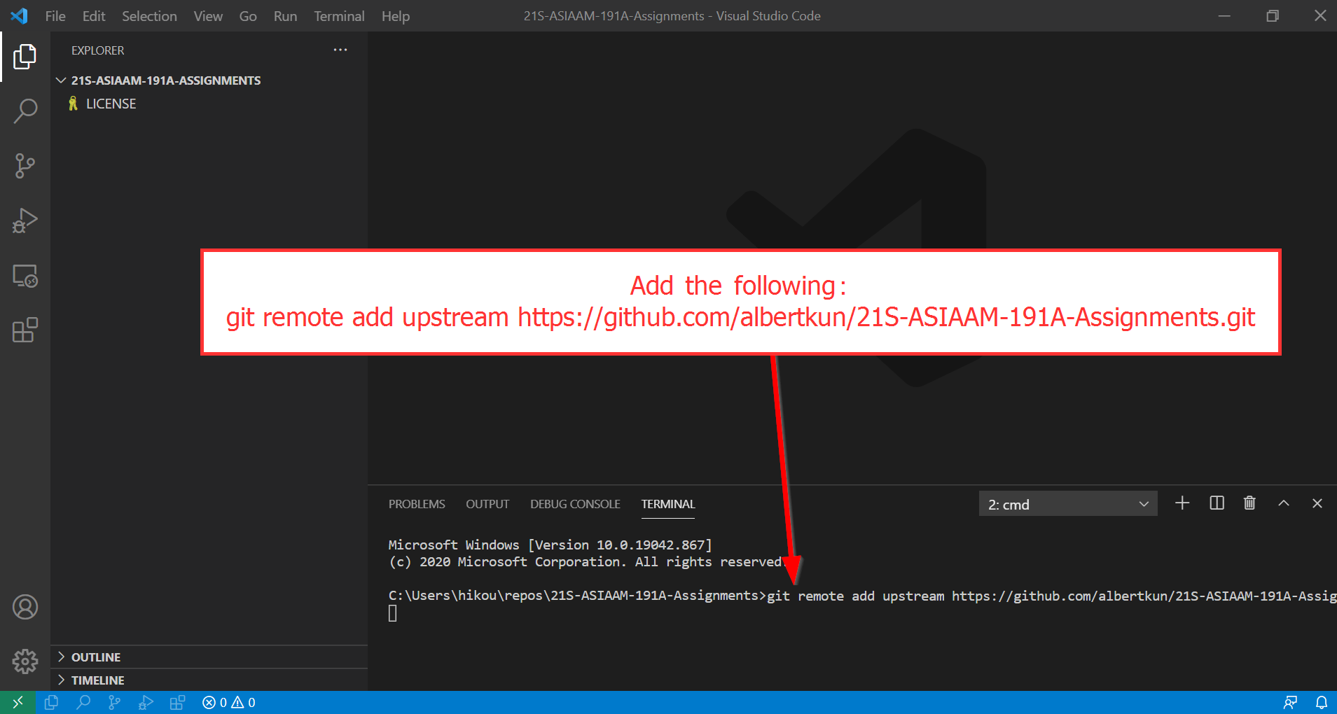git remote add upstream https://github.com/albertkun/21S-ASIAAM-191A-Assignments.git